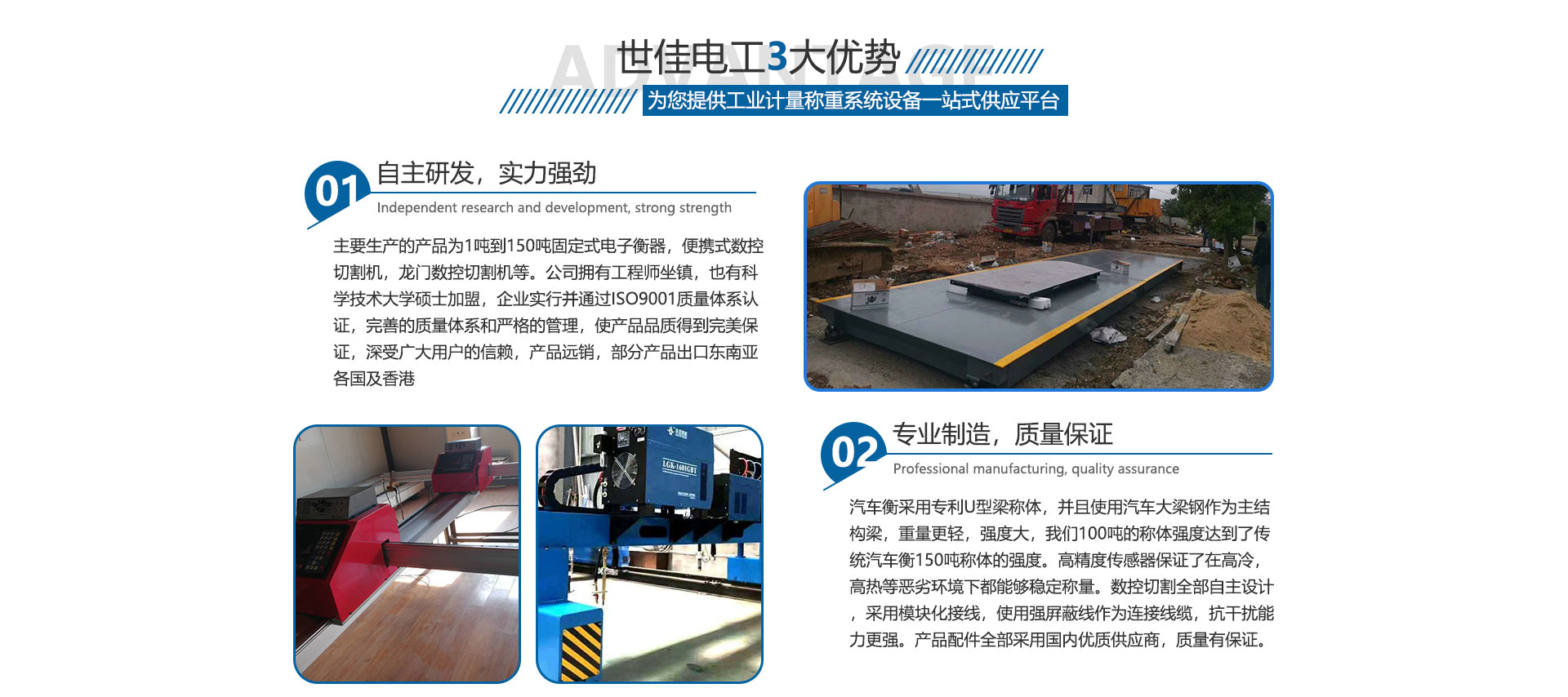 關(guān)于我們合肥世佳電工設備有限公司是生產(chǎn)、銷售工業(yè)自動化設備。主要生產(chǎn)的產(chǎn)品為1噸到150噸固定式電子衡器,便攜式數(shù)控切割機,龍門數(shù)控切割機等。公司擁有工程師坐鎮(zhèn),也有中國科學技術(shù)大學碩士加盟,完善的質(zhì)量體系和嚴格的管理,使產(chǎn)品品質(zhì)得到保證,深受廣大用戶的信賴,產(chǎn)品各地可售,部分產(chǎn)品出口東南亞各國及香港,數(shù)控切割設備也在安徽處于前列。我們并不滿足現(xiàn)在所取得的成就,公司繼續(xù)加大科研投入,正在和中科大物理研究所科研人員共同研究開發(fā)下一代衡器控制儀表,希望以技術(shù)作為突破口,將公司做大做強,為中華崛起盡自己一份綿薄之力。歡迎廣大客戶來廠參觀訂貨考察。